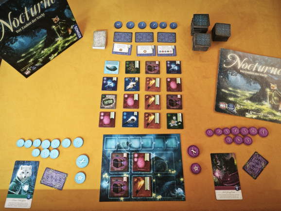 12.08.2025 von 2-PL4Y3R5Nocturne ist eine Neuerscheinung, die etwas unter dem Radar zu laufen scheint. Vielleicht liegt es wieder am Marketing? Das Artwork auf der Spielschachtel jedenfalls entspricht nicht wirklich dem, was sich darin befindet: ein kurzweiliges, Familien-taugliches Set Collection Spiel mit innovativem Biet-Mechanismus. Nocturne mag nicht der Megahit sein, hat aber durchaus seinen Reiz und sollte meiner Meinung nach gerade unter den Familienspielern seine Anhänger finden. Warum es bei Kosmos als Kennerspiel läuft, erschließt sich mir nicht. In dieser Rezension versuche ich herauszuarbeiten, für wen Nocturne wirklich etwas ist, und wer vielleicht eher die Finger davonlassen sollte.