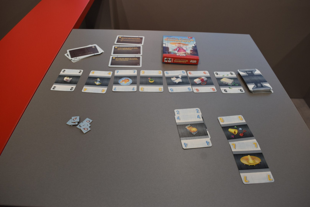 Wie mittlerweile üblich reisten wir erst am zweiten Messetag, dem Mittwoch, an. Dies war besonders in Bezug auf das Wetter eine gute Wahl, denn die Tage zuvor herrschte ein ziemliches Schneechaos. Am Mittwoch konnten wir hiervon nur noch die Überbleibsel bewundern. Kaum angekommen und kurz in der Presselounge gesammelt, ging es auch schon zu den ersten Terminen. Hier stand Amigo als erstes auf dem Programm. Zwar kannten wir die Neuheiten im Großen und Ganzen schon, aber die Führung hat uns doch noch einiges Neues offenbart. So gibt es von Clack! nun eine magnetfreie Variante und wir konnten die ersehnte Jubiläumsausgabe von Wizard bewundern. Diese enthält nun alle Sonderkarten bisheriger Editionen (außer von Das schwarze Auge) und darüber hinaus noch ein paar weitere Verbesserungen. Es gibt keinen Wertungsblock mehr, sondern alles wird über Marker gezählt. Ebenfalls zu den Frühjahrsneuheiten gehört das Anfänger-Stichspiel Matter Matters, das mit einem interessanten Spielprinzip ums Eck kommt, bei dem man jede Stichfarbe hat und bei seinen Stichen auf das Gleichgewicht aus Materie und Antimaterie achten muss. Etwas mehr überzeugte uns Greedy Goose. Ein Spiel, bei dem es um das Sammeln von Karten geht, aber man darf nicht zu gierig sein. Den Abschluss machte dann Koffer, Katze & Sombrero, hinter dem wir erst eine Variante von „ich packe meinen Koffer“ vermutet hatten. Es ist aber ein weiteres Set-Collection-Spiel.