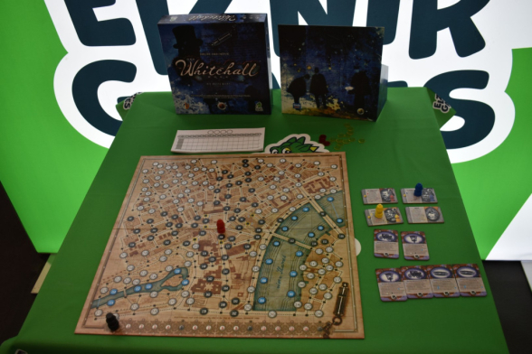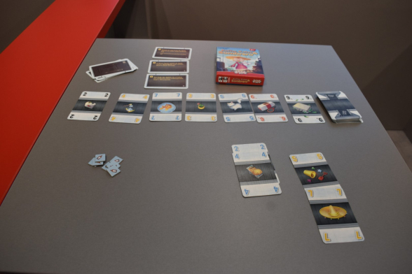 Nach einem kurzen Messespaziergang widmeten wir uns dann Heidelbär und CGE. Neben der bekannten Neuheiten wie Codenames - Back to Hogwarts, gab es auch den „Nachfolger“ von The Kings Dilemma, nämlich The Queens Dilemma zu bewundern. Auch Elznir hatte einiges zum Zeigen. Besonders ins Auge stach uns dabei das Gemeinschaftsprojekt mit HYBR: Towers of Yoma, ein App gestütztes Tower-Defense*Game. Für Elznir gab es mit dem ersten selbstentwickelten Spiel Banano eine Premiere.