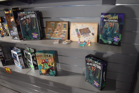 Im vorletzten Termin präsentierte man uns am Stand von Cranio noch das vielversprechende Geschicklichkeitsspiel Orcs Up!. Ebenfalls interessant war hier das an Harmonies erinnernde Planet Bee, das den bekannten Mechanismus noch etwas komplexer präsentieren möchte. Neu war für uns der Verlag Red Glove, der vor allem mit Kinder- und Familienspielen auf der Suche nach deutschen Distributoren war. Hier stach uns Jurassic Valley ins Auge, das durch seine Fossilien-Modelle aus Holz bestach. Ebenfalls interessant dürfte aber der Dungeon Cube sein, der vom Grundprinzip her an einen Rubics Cube erinnert, bei dem man aber nicht die Farben sortieren, sondern Aufgaben erledigen und sich durch eine Geschichte spielen muss.
