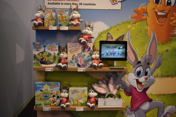 Nach einem kurzen Abstecher bei GiGamic und allplay widmeten wir uns dem gigantischen Stand von Simba Dickie, bei dem uns neben den Brettspielneuheiten von Zoch und Noris noch diverse neue Spielwaren präsentiert wurden. Es ging von Kinderspielen wie Flitze Flatze Bärentatze über Logikspiele wie IQ Rope und kuscheligen Glücksbärchis bis hin zu massiven Actionfiguren aus Metall von amerikanischen Subunternehmen.