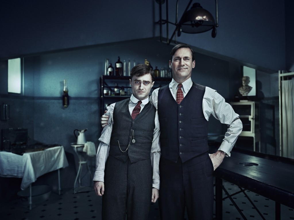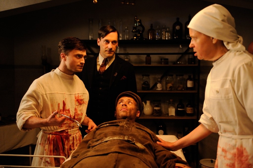 Wenn sich eine britische Produktion einer eigentlich ernsten Thematik annimmt, und aus dieser eine Comedyserie macht, dann weiß der geneigte Fan, was hier auf ihn wartet. Genau diese Erwartungen erfüllt schließlich auch A Young Doctor´s Notebook. Die Serie nutzt die medizinischen Probleme in der Abgeschiedenheit Russlands zu Beginn des 20. Jahrhunderts, die politischen Unruhen im Land sowie die Morphiumsucht seiner Hauptfigur nur als Grundgerüst für eine Ansammlung skurriler Charaktere, schräger Dialoge und extrem schwarzem Humor. Gerade für letzteren Bedarf es schon eines ordentlichen Maßes an Schadenfreude und schlechtem Geschmack beim Zuschauer, denn was hier stellenweise zugemutet wird, dürfte nicht jedermanns Spaßvorstellung treffen und bei manchen wohl sogar für angewidertes Kopfschütteln sorgen. Hat man jedoch seine Freude an bitterbösen Späßen jenseits von Anstand und Moral, dann sind es gerade diese Szenen, die A Young Doctor´s Notebook so großartig machen. Da wird mit stumpfen Sägen amputiert, das Ableben von Patienten sarkastisch kommentiert oder auch schon Mal unromantische Befriedigung von Begierden vollzogen, Hauptsache das Ganze ist möglichst schräg. Wirklich hervorragend ist hier aber auch das Zusammenspiel der beteiligten Figuren, denn diese harmonieren einfach perfekt miteinander und wissen sich allesamt stimmig zu ergänzen. Auf diese Weise gibt es eigentlich niemanden, der den anderen überschattet oder sich in den Vordergrund drängt, denn die Serie weiß jeden Charakterzug seiner wenigen Figuren für seine Inszenierung zu nutzen. Die Besetzung hätte dabei nicht besser gewählt sein können, denn jeder der Schauspieler weiß auf seine ganz eigene Art zu gefallen. Vor allem aber Daniel Radcliffe und Jon Hamm strahlen eine beinahe schon symbiotische Harmonie aus, ganz so, als wären sie wirklich ein und dieselbe Person in unterschiedlichem Alter.