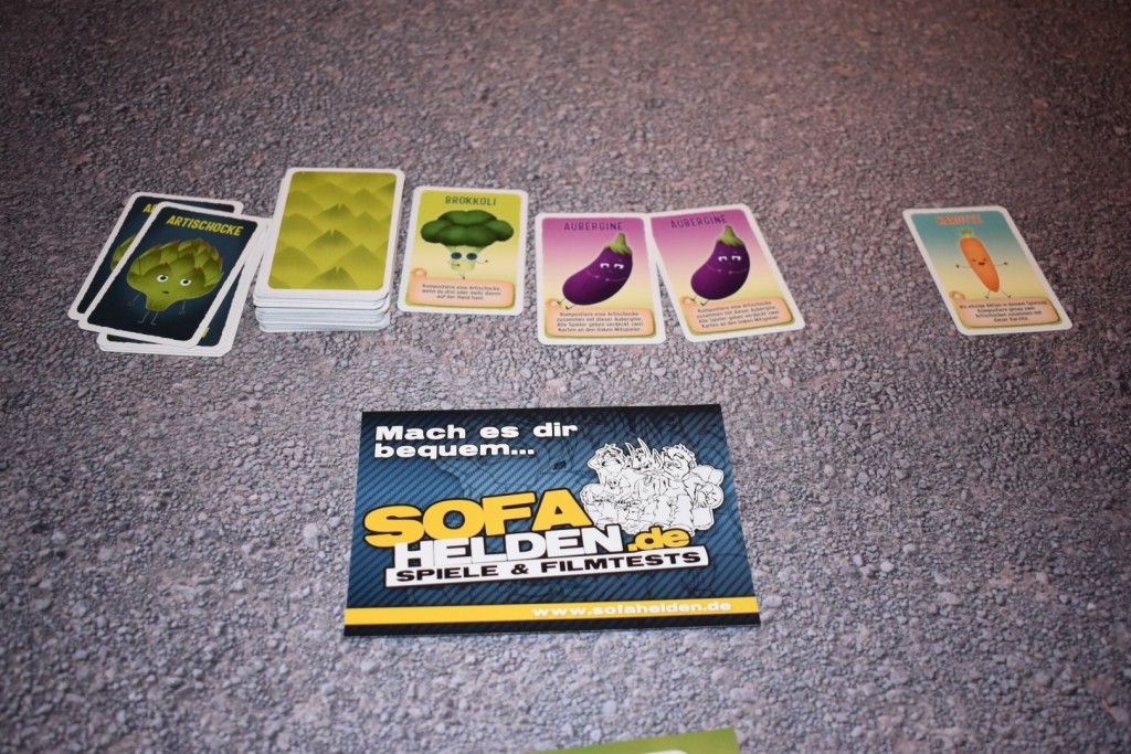Artischocken ist ein reines Kartenspiel, das neben den sehr liebevoll gestalteten Gemüsekarten noch vier Spieler-Ablagen bietet. Letztere sind etwas dünn, ähnlich wie Poster, erfüllen aber ihren Zweck. Die Karten sind, wie von Amigo gewohnt in Materialstärke und Qualität sehr gut. Vor dem ersten Spiel gilt es lediglich die zwei Kartenstapel von ihrer Plastikfolie zu befreien.