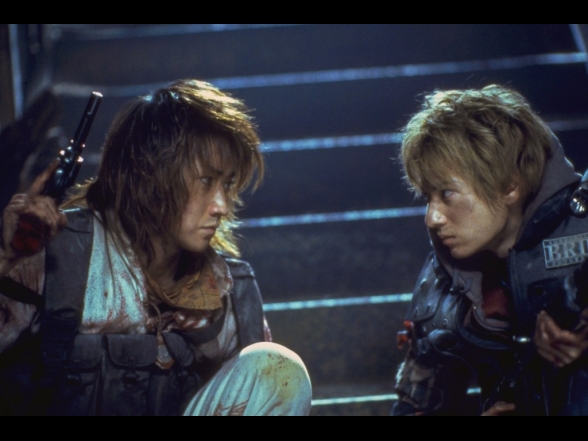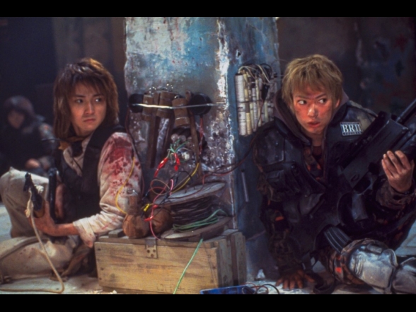 Battle Royale 2 mag nur im groben Sinne als eine Fortsetzung herhalten. Nachdem Kinji Fukasaku verstorben ist, sind die Erlebnisse und schwere Zeit des Sohnes und womöglich auch zahlreiche äußere Einflüsse unweigerlich mit in den Film eingeflossen. Der Film geizt ganz im Gegensatz zum ersten Teil nicht mit zerfetzten Körpern oder schier endlosen Kugelschlachten und auch die offensichtliche Kritik an die globale Einmischung Amerikas in der Welt wird deutlich dargestellt. Die mehrmals deutlichen Aufzählungen vieler Staaten, die Alle unter dem Verfall der Moral und von Amerika angegriffen wurden, zeigt dies doch recht auffällig. Die Story selbst wirkt ein wenig zusammengeworfen und weist zum Teil diverse Logiklöcher auf. In der Standardfassung bleiben die Charaktere zum großen Teil inhaltsleer und nur in der 20-minütigen längeren Revenge-Fassung bekommt der Zuschauer wesentlich mehr Fülle. Auch die Rolle des anfangs offensichtlich depressiven und dann halb durchdrehenden und medikamentensüchtigen Lehrer Riki Takeuchi (gespielt von Riki Takeuchi) endet in einem so irrwitzigen Showdown, der manchen Zuschauer völlig verwirrt zurücklassen wird. Nichtsdestotrotz ist der Film ein durchaus mutiger Film, der die politische Lage (bezogen auf die USA) in der Zeit kritisiert. Aber auch die die eigene Stellung der Jugendlichen, die während ihres Kampfes gegen die japanische Regierung eben auch Jene töten, für die sie eigentlich kämpfen, bringt gewaltige Emotionen in den Film, die den Zuschauer auch überlegen lässt und den Krieg von beiden Seiten betrachtet. Wer ist gut und wer ist böse?