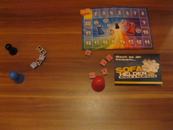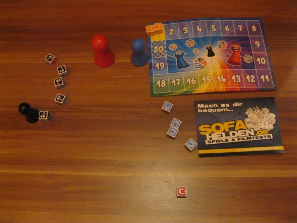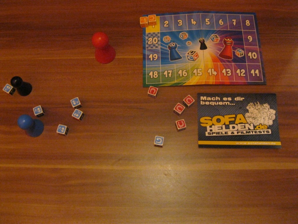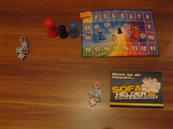 Durch das Würfeln aller fünf Würfel und Erzielen eines gleichfarbigen Ergebnisses erhalten die Spieler die jeweilige große Spielfigur. Am Rundenende werden die Figuren ausgewertet und die orangenen Würfel der Spieler auf dem Spielplan vorgesetzt. Der Spieler, der als erster auf dem Zielfeld mit der Zwanzig ankommt, hat gewonnen. Sollten mehrere Spieler gleichzeitig im Ziel landen, so gibt es mehrere Gewinner.