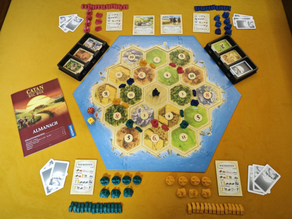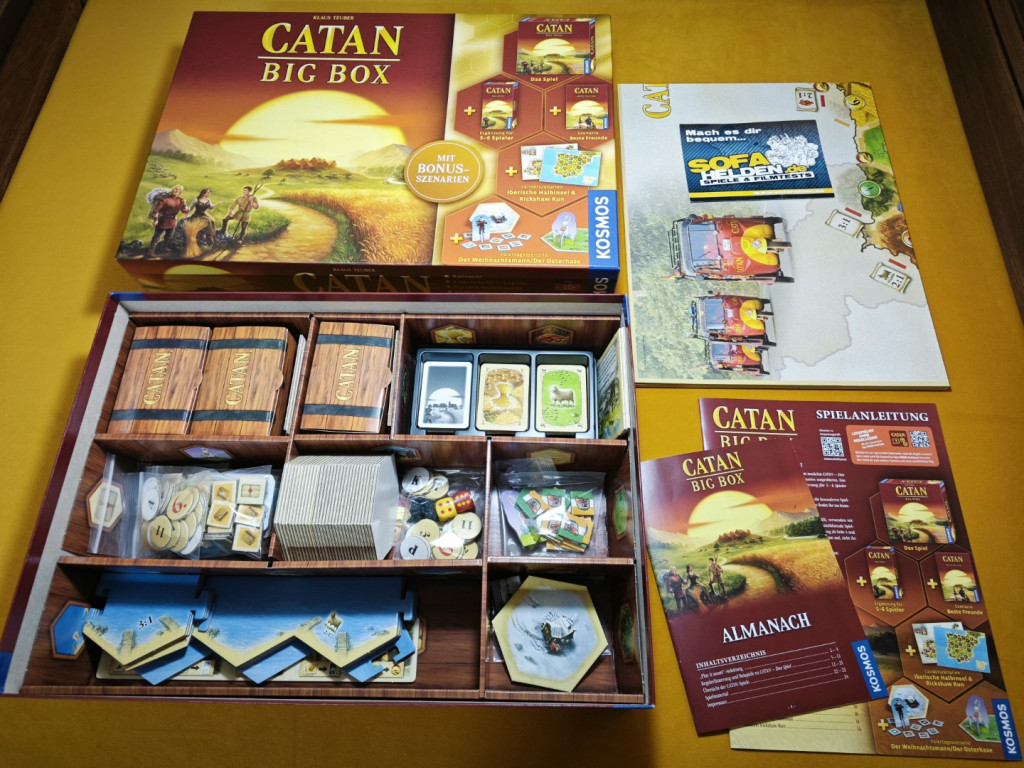 Nach 10 Jahren im Brettspielhobby, gesättigt und geblendet von den vielen alljährlichen Neuerscheinungen, ist uns danach gewesen mal wieder die Klassiker hervorzukramen und im Kontext der modernen Brettspiele neu zu bewerten. Und erstaunlicherweise haben die meisten dieser Klassiker sehr gut abgeschnitten. So auch Catan. Catan war eines der ersten „richtigen“ Brettspiele, die ich in der Kindheit gespielt habe, mit der Familie. Damals hatte ich auch die Erweiterungen Seefahrer und Städte und Ritter. Meine Frau hingegen kam noch nie in Berührung mit Catan. Jetzt haben wir uns mit der Big Box einen (Neu-)Einstieg ins Catan Universum erlaubt. Hier findet ihr unsere Bewertungen aus unseren zwei unterschiedlichen Perspektiven.