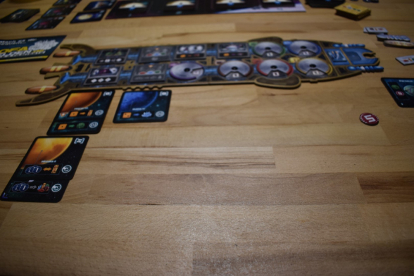 Durch die Ausbauten könnt Ihr mehr Aktionsmöglichkeiten erhalten, mehr Lagerraum, erzwungenen Handel mit deinem Gegenüber oder weitere Vorteile. Die Aufträge bringen Euch ebenfalls Ressourcen und Siegpunkte. Erfüllen könnt Ihr Sie in Eurer Flugphase, wenn der entsprechende Planet aufgedeckt wurde und Ihr die angegebenen Ressourcen abgebt.