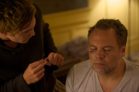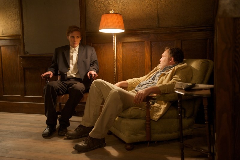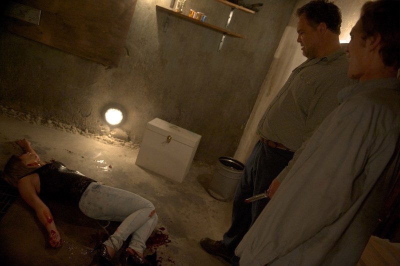 Harter Tobak, den Frau Lynch hier aus dem Folterkeller zaubert. Hier werden die tiefsten menschlichen Abgründe aufgerissen, und als ob das nicht reichen würde, steht die Regisseurin auch noch helfend mit der Schaufel in der Hand zur Seite. Chained liefert alles, was man als normal denkender Mensch mit tiefster Verachtung straft. Vergewaltigung, Mord, Sklaverei, und auch eine Prise Inzest und Verrat dürfen hier selbstverständlich nicht fehlen. Allein der Einstieg ist ein ordentlich derber Schwinger richtung Magengrube. Die Inszenierung des Todes der Mutter von Rabbit weiß wirklich zu verletzen. Die zwischen den Schreien gewisperten Worte der Mutter, die versucht, ihren Sohn zu beruhigen, als sie ins Haus geschleppt wird. Das endgültige Verstummen und die Klarheit, die auch Rabbit irgendwann dämmert, dass Mama wohl nicht mehr rauskommen wird, hauen richtig rein. Dennoch ist die Anfangssequenz recht kurz geraten, denn direkt danach befleißigt sich Frau Lynch eines Zeitsprungs und Rabbit ist im besten Teenageralter. Da wirkt es schon befremdlich, dass er in all der Zeit nicht irgendwie versucht hat, zu fliehen. Oder zumindest werden diese Fluchtversuche, abgesehen vom ersten im Kindesalter, dem Zuschauer vorenthalten. Dennoch ist die Entwicklung Rabbits nachvollziehbar. Nach Jahren voller Blut, Missbrauch und Tod bricht wohl jeder Geist irgendwann. Gerade wenn er noch so jung ist. Und genau das macht den Film so hart, obwohl es kaum visuelle Gewalt zu sehen gibt. Das meiste spielt sich in den Köpfen der Zuschauer ab.