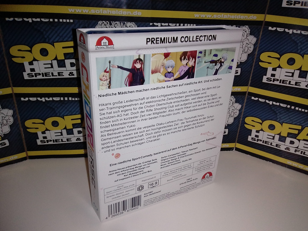 Die Premium Edition von Chidori RSC - Rifle is Beautiful besteht aus zwei Softboxen, die jeweils eine Disc sowie ein Booklet beinhalten, und wird umschlossen von einem O-Card Schuber. Auf dem Cover des Schubers sind die Freundinnen Hikari und Izumi zu sehen, während die Rückseite die üblichen Details und Inhaltsangaben liefert. Auf der Softbox von Volume 1 wiederholt sich noch einmal das Covermotiv, das Cover von Volume 2 zeigt die übrigen beiden Mitglieder des Chidori Rifle Shooting Club. Die beiden Booklets sind absolut identisch und liefern auf jeweils 16 Seiten einen Charakterguide zu den Haupt- und Nebenfiguren der Serie.