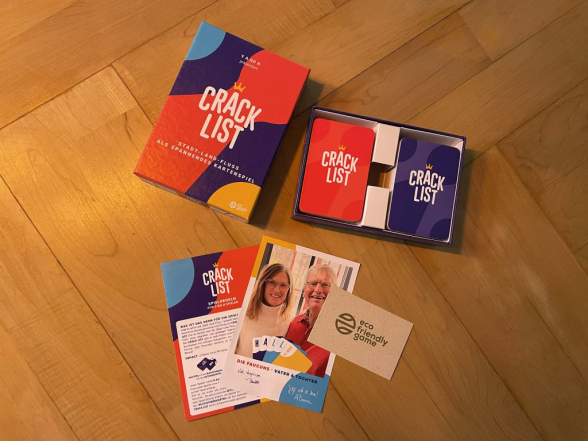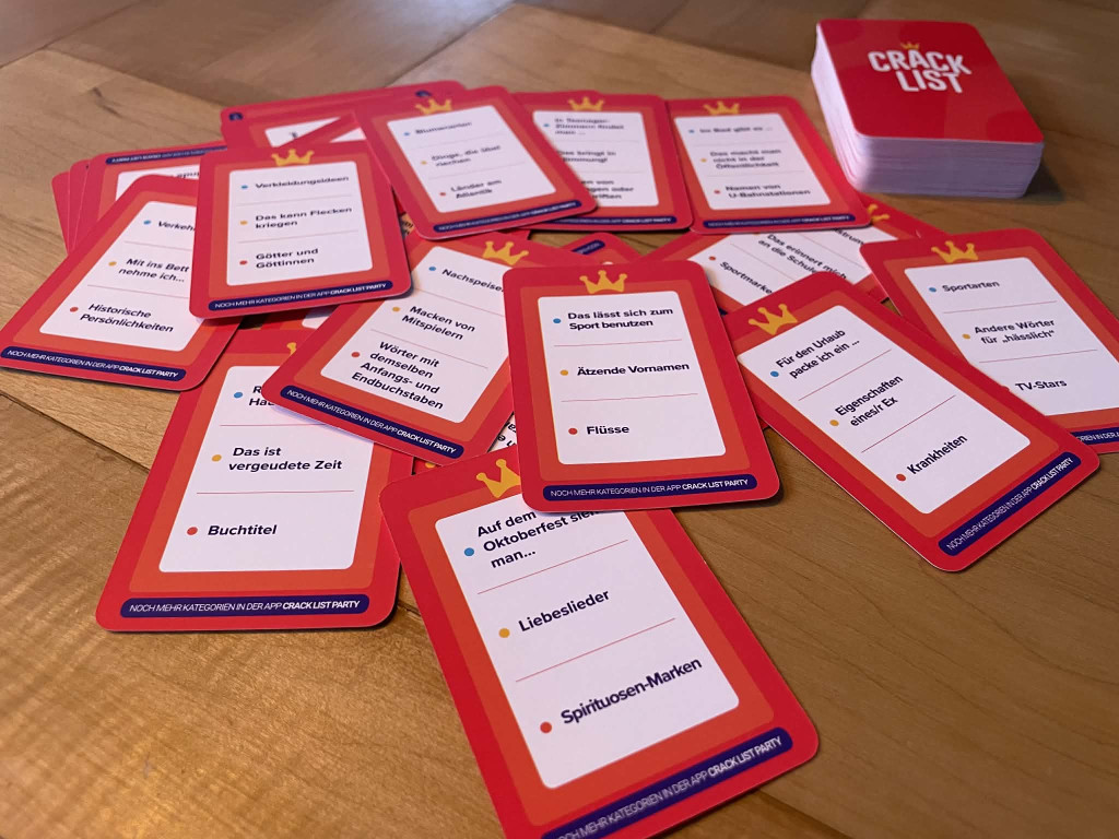 Ich mag das Spiel, auch wenn ich bei Stadt Land Fluss nie besonders gut war. Unter Zeitdruck passende Begriffe zu finden ist für mich eine Herausforderung, doch gerade das macht den Reiz aus und mit jeder Runde wird man ein wenig sicherer. Insgesamt sorgt Crack List für viel Spaß am Tisch, auch wenn es gelegentlich zu Diskussionen kommt, weil manche Kategorien sehr offen auslegbar sind. Besonders hilfreich ist es, vor Beginn der Runde kurz festzulegen, wie eng oder weit eine Kategorie verstanden werden soll – dann bleibt die Stimmung entspannt. Ein kleiner Wermutstropfen ist, dass im Spiel selbst weder Timer noch Sanduhr enthalten sind. Dadurch muss die Zeit entweder nach Gefühl geschätzt oder per Handy gestoppt werden.