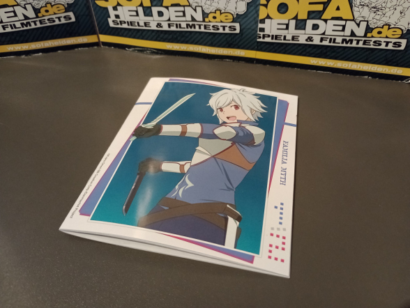 Die Collector´s Edition erscheint wie gewohnt als 2-Disc Set verteilt auf zwei Softboxen im O-Card Schuber. Letzterer lag uns dieses Mal zwar nicht vor, dieser entspricht aber den bisherigen Veröffentlichungen und übernimmt daher Design, Covermotiv und Rückseitentext der ersten Softbox. Die Box zur ersten Disc zeigt ein Covermotiv mit Hestia und Bell und bietet auf der Rückseite die entsprechenden Inhaltsangaben zu den ersten sechs Episoden. Zudem beinhaltet Box 1 ein 32-seitiges Booklet mit ausführlichem Episodenguide und zahlreichen weiteren Hintergrundinfos. Box 2 zeigt auf dem Cover Welf und Liliruca - zwei Mitglieder des Expeditionsteams - und bietet auf der Rückseite einen Einblick in die Handlung der Episoden 7-11. Neben der Disc beinhaltet die zweite Box außerdem einen Bell-Acrylaufsteller, der in der kommenden Volume 02 durch einen Hestia-Aufsteller ergänzt wird.