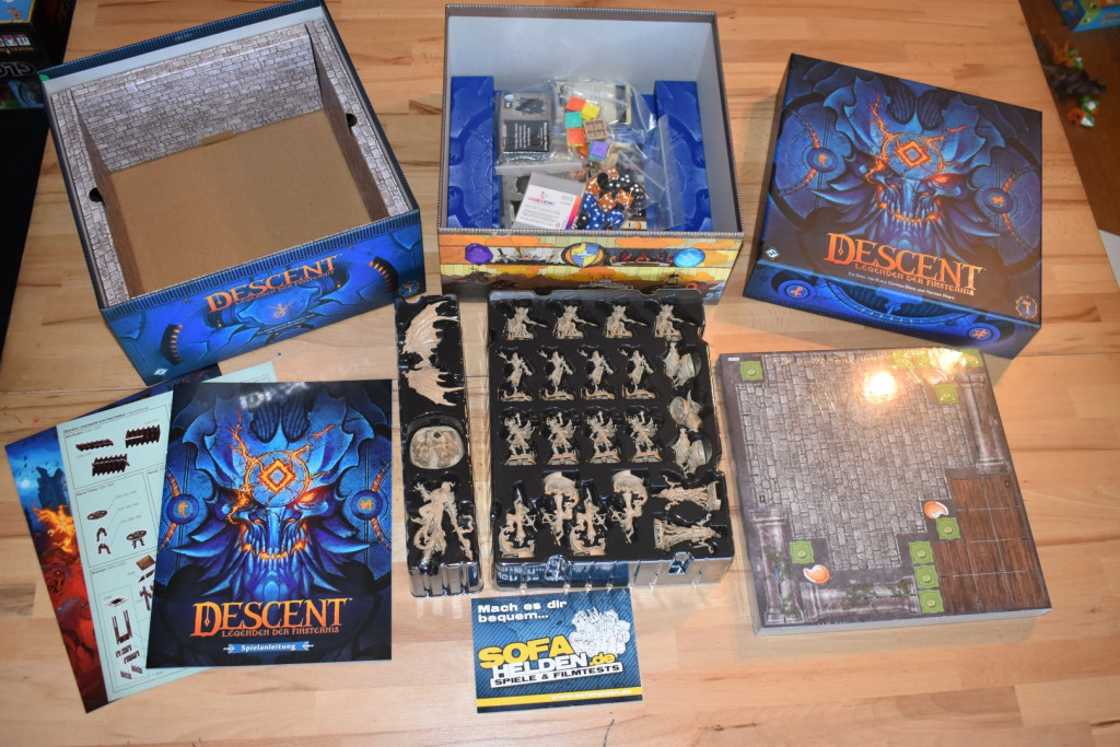 12.02.2023 von Born2bewildDescent ist ein Klassiker unter den Dungeon Crawlern. Mit Descent - Legenden der Finsternis gibt es nun den geistigen Nachfolger. Wieder App-gestützt und mit einem Wahnsinnsumfang. Das Spielmaterial ist so viel, dass die Schachtel aufgestockt werden musste. Ob das Spiel nur beim Umfang klotzt und bei der Wertung dann kleckert, erfahrt Ihr in unserem Review…