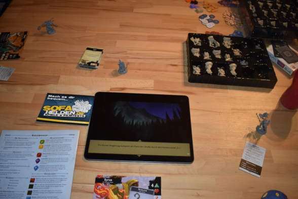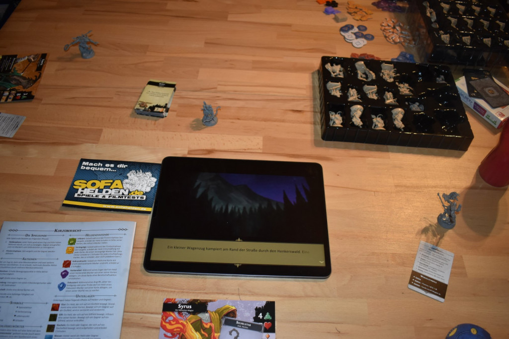 Da denkt man sich abends, man liest nochmal schnell eine Anleitung und hat dann ein 32 Seiten Brett vor Augen und denkt sich, dass man doch irgendwie zu müde ist. Also am nächsten Tag damit begonnen und die Anleitung geradezu verschlungen. Sie ist sehr detailliert und liest sich für erfahrenere Spieler etwas schneller als für Neulinge. Der eigentliche Spielablauf wird auf achtzehn Seiten beschrieben. Die übrigen Seiten behandeln den Aufbau, Begriffserklärungen, die Kampagnenregeln (erst nach dem ersten Abenteuer notwendig), eine Art Glossar und eine Kurzübersicht auf der Rückseite. Analog zu ähnlichen Spielen gibt es auch hier ein Referenzhandbuch, das allerdings nicht in Papierform, sondern innerhalb der App zu finden ist. Dafür liegt noch ein Kompendium mit ein paar Hintergrundgeschichten bei. Einen weiteren Pluspunkt gibt es für die Möglichkeit, sich in der App die Sichtlinien anzeigen zu lassen. Dennoch muss man einiges an Zeit für das Regelstudium aufbringen. Wenn man allerdings Beispielsweise Herr der Ringe - Reise durch Mittelerde schon gespielt hat, so ist vieles sehr ähnlich und man kennt die Grundsätze bereits.