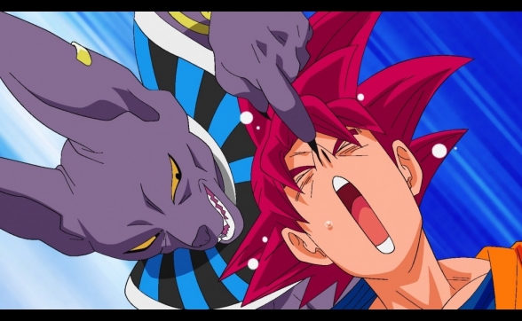 Dieser Jemand nennt sich Beerus und ist der zu früh aus seinem Schlaf erwachte Gott der Zerstörung, das Gegenstück zu den Kaios, welches das Universum im Gleichgewicht hält. Nur mit einer kleinen Fingerbewegung zerstört er ganze Planeten, wenn ihm etwas nicht passt - in der Regel, wenn ihm das Essen darauf nicht schmeckt. Zusammen mit dem mysteriösen Magier Whis streift er so durchs Universum auf der Suche nach dem "Super Saiyajin Gott", einem Wesen, das ihm in seinen Träumen erschienen ist und ihm ebenbürtig sein soll. Die meisten der verbliebenen Saiyajin leben auf der Erde, weshalb ein Besuch dort unvermeidlich ist. Und Goku, der bei der Aussicht auf einen so starken Gegner völlig aus dem Häuschen ist, muss schnell lernen, dass er Beerus nicht im Entferntesten das Wasser reichen kann...
