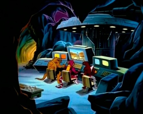 Von der Geschichte abgesehen haben wir es mit ziemlich sympathischen Charakteren zu tun, deren ikonische Eigenarten manchmal vielleicht etwas überstrapaziert werden, größtenteils aber vorteilhaft funktionieren. Die blauhäutige Weltraumpolizistin Chedra ist sehr regelkonform und zitiert in ausnahmslos jeder Situation ihr allumfassendes Regelbuch - ein Running Gag, der maßlos überstrapaziert wird, den Triceratops Spike aber regelmäßig auf die Schippe nimmt. Der Shopping-Kanal-süchtige Flugsaurier Bullzeye hingegen ist mir über 20 Jahre hinweg genauso fest in Erinnerung geblieben wie die allgemeine Dinosaurier-Vorliebe für scharfes, mexikanisches Essen (auch hier sieht man die Ähnlichkeit zu den Turtles mit ihrer Pizza-Versessenheit).