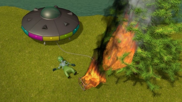 Am nächsten Tag erzählt Norman Mandy von seiner Beobachtung des Ufos und die ist gar nicht mal so überrascht, wurden doch in letzter Zeit häufiger Ufos in Pontypandy gesichtet. Sie zeigt Norman die bekannte Sendung „Suche nach Außerirdischen“, die von Buck Douglas moderiert wird. Dieser berichtet gerade, dass er und sein Team in der nächsten Woche in Pontypandy drehen werden. Dabei versuchen sie die Zuschauer zu animieren, offizielle Buck Douglas Weltraumdetektive zu werden. Das geht natürlich nur, wenn man das entsprechende Merchandise kauft und seine Sichtungen an sein Team meldet. Unterdessen weihen die Feuerwehrmänner das neue Bergrettungszentrum ein, als ein Brand in einer Lichtung ausbricht. Gemeinsam mit dem Bergretter und Hubschrauberpiloten Tom dämmen sie das Feuer ein. Doch es bleibt ein Mysterium, warum dieses Feuer ausgebrochen ist.