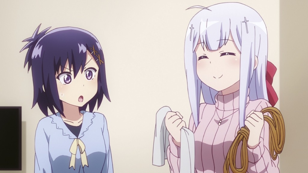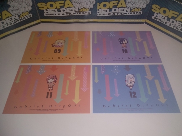 In den finalen vier Episoden gelingt es Gabriel DropOut wider Erwarten, sich noch einmal auf die eigenen Stärken zu besinnen. Statt simple Slice-of-Life Kost ohne persönliche Note zu liefern, bringt die Serie zum Schluss erneut den fantastischen Charakter von Engeln und Teufeln zurück ins Spiel und sorgt damit nicht nur für jede Menge neues Chaos, sondern erweitert zudem durch gelungene Locationwechsel und neu eingeführte Figuren aus dem familiären Bereich das gesamte Universum der Serie. Das sorgt unter anderem für die dringend benötigte Abwechslung in der zuvor stagnierenden Geschichte, während gänzlich neue Situationen und die sich dadurch ergebende Probleme für gute Unterhaltung sorgen. Selbst ein längst seiner Komik beraubter Running Gag wird im Finale dazu genutzt, der Handlung eine zusätzliche Nebengeschichte zu verschaffen, was in Verbindung mit den sich überschlagenden Ereignissen deutlich klarmacht, dass sich Gabriel DropOut zum Abschluss noch ein letztes Mal mit allen Mitteln ins Zeug legt, um den Zuschauer zufriedenzustellen. Konsequenterweise und wie erhofft konzentriert sich das Geschehen dabei in den letzten Episoden tatsächlich noch einmal konkret auf die Entwicklung von Gabrielle, deren weiteres Schicksal auf der Erde bis zum letzten Moment absolut offenbleibt. Ein Highlight wird aus Gabriel DropOut durch das gelungene Ende zwar nicht, immerhin macht das Ganze zum Abschluss aber noch einmal eine Menge Spaß. Die stärksten und witzigsten Momente hält allerdings tatsächlich die zehnte Episode bereit, denn der Heimaturlaub der vier chaotischen Freundinnen ist wirklich zum Schießen...
