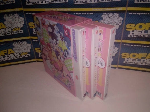 Das Digipak der dritten Volume komplettiert den Sammelschuber, der mit der ersten Volume geliefert wurde. Auf dem Cover des Schubers ist dieses Mal die Teufelin Satania zu sehen, während das Cover des Digipaks alle vier Hauptfiguren gemeinsam zeigt. Die Rückseite bietet wie auch bisher diverse Szenenmotive im Chibi-Stil. Das gesamte Digipak wird von einer losen J-Card umschlossen, die wie üblich die Infos und Details zur Edition bereithält. Im Inneren des Digipak befindet sich neben der Disc der letzte Teil des "Spiel des ewigen Lebens", ebenso wie ein kurzes Booklet mit Charakterprofilen sowie vier beidseitig bedruckte Artcards mit Motiven zur Serie.