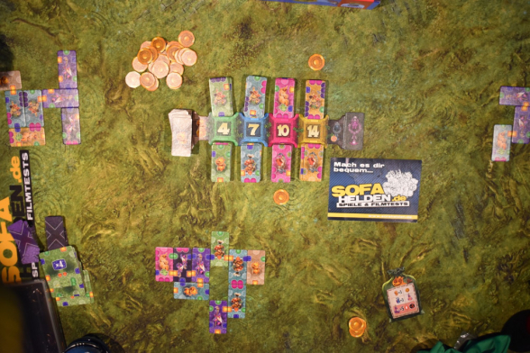 Runde um Runde versucht Ihr Euch einen Garten zu puzzeln, bei dem Ihr möglichst viele vollständige Edelsteine habt. Diese bringen Euch Punkte, von denen Ihr Euch wiederum neue Plättchen kaufen könnt. Irgendwann werdet Ihr so in der Lage sein, das Siegplättchen mit dem Wert Siebzehn beziehungsweise Zwanzig zu kaufen. Ist das der Fall, endet das Spiel und die Person, die das Siegplättchen gekauft hat, gewinnt das Spiel.