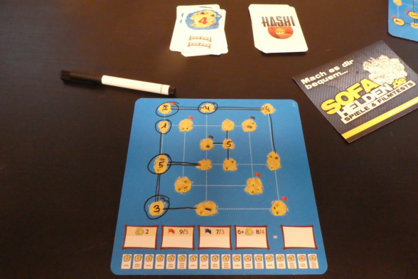 Ein beliebiger Spieler der Runde deckt die oberste Karte auf. Darauf sind eine Zahl und darunter ein bis drei Brücken abgebildet. Diese wird nun von allen Spielern gleichzeitig abgehandelt. Zuerst entscheidet jeder für sich, ob er die Zahl auf eine noch freie Insel eintragen möchte, auf der keine Fahne zu sehen ist. Inseln mit Fahne dürfen in diesem Schritt erst ausgewählt werden, wenn mindestens eine Brücke zu dieser Insel führt. Die Zahl gibt an, wieviel Brücken maximal an dieser Insel anliegen dürfen. Im Anschluss entscheiden sich die Spieler, ob sie die angezeigten Brücken auf ihrem Plan eintragen möchten. Dabei gilt, dass entweder alle angezeigten Brücken eingezeichnet werden oder keine. Die Brücken dürfen auf dem gesamten Archipel eingezeichnet werden, sie müssen nicht an derselben Insel anliegen. Beim Einzeichnen muss bedacht werden, dass Brücken sich nicht kreuzen dürfen, an jeder Insel maximal so viele Brücken anliegen wie die eingetragene Zahl angibt und maximal zwei Brücken parallel liegen dürfen, also bei derselben Insel anfangen und zur selben Insel führen. Ist die erste Karte von allen abgearbeitet, wird die nächste Karte aufgedeckt und ebenfalls abgehandelt. So verfahren die Spieler, bis der Stapel an Karten abgearbeitet ist. Dann beginnt die Wertung. Dabei gibt es Punkte, die bereits im Laufe der Partie erreicht werden können als auch Punkte für jede erfüllte Insel, also Inseln, bei denen Zahl und Anzahl der Brücken übereinstimmen. Der Spieler mit den meisten Punkten gewinnt.