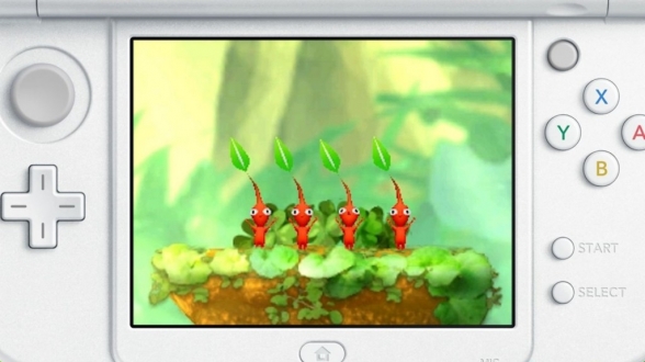 Hey PIKMIN! nutzt leider keine 3D-Darstellung, da das Spiel in den Levels beide Bildschirme des 3DS nutzt. Captain Olimar läuft immer auf dem unteren Bildschirm aber auf dem oberen Bildschirm gibt es häufig einiges zu entdecken. Leider sind die Bilder nicht so zueinander angelegt, dass sie direkt aneinanderpassen, sondern es ist der Spalt zwischen dem oberen und unteren Bildschirm auch tatsächlich im Spiel vorhanden, was dazu führt, dass aus diesem toten Winkel häufiger mal ein Gegner hervorkommt und ein Pikmin frisst. Die Vertonung ist furchtbar eintönig und eine Sprachausgabe gibt es auch nicht, was nicht schlimm ist, da Pikmin eh nicht reden können. Darüber hinaus scheint der Titel noch nicht ganz fehlerfrei zu sein. So passiert es manchmal, dass Pikmin irgendwo hängenbleiben und auch per Pfeife nicht mehr von der eigentlich freien Stelle zu lösen sind.
