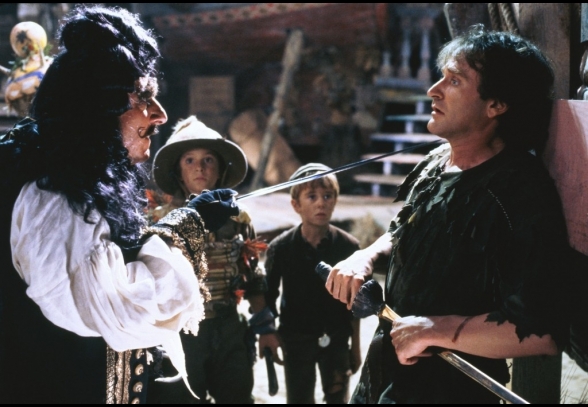 Peter Banning (Robin Williams) ist ein beschäftigter und erfolgreicher Anwalt, lebt mit seiner Frau Moira (Caroline Goodall) in einem tollen Haus und hat zwei wunderbare Kinder Jack (Charlie Korsmo) und Maggie (Amber Scott). Doch leider kann er sich nicht so wie gewünscht um seine Familie kümmern. Immer wieder kommt ihm das Handy oder ein wichtiger Termin dazwischen, was ihm auch alles irgendwie wichtiger scheint, als gemeinschaftliche Unternehmungen mit Moira, Jack und Maggie. Das Ganze findet seinen Höhepunkt darin, dass er wieder einmal zu einem der Baseballspiele seines Sohnes zu spät erscheint. Dieses Mal scheint richtig Gefahr für die Beziehung im Verzug. Das Traurigste an der Sache ist aber tatsächlich, dass Peter augenscheinlich seine eigene Kindheit vergessen hat und nur noch auf das ach so erwachsene Leben aus ist. Doch glücklicherweise tritt die Familie zum anstehenden Weihnachtsfest eine Reise nach London zu den Eltern von Moira an.Dort scheint zunächst alles genauso zu laufen, wie es noch daheim der Fall war: Peter hat nur das Geschäft im Kopf und meckert mit seinen Kindern immer nur rum. Eines Abends ist die gesamte Familie bis auf die Kinder auf einer Preisverleihung für die Großmutter Wendy (Maggie Smith). Als sie wieder nach Hause kommen, ist das ganze Haus durchwühlt und die Kinder verschwunden – es ist lediglich ein altes Pergament mit einem Schwert an der Tür befestigt. Darauf fordert der alte Rivale Kapitän Hook (Dustin Hoffman) seinen Erzrivalen Peter Pan dazu auf, sich seine Kinder zurückzuholen und sich dem Krieg zu stellen. Und plötzlich kommt Peter seine Erinnerung Stück für Stück zurück: Er reist in das fantastische Nimmerland, nimmt dort die Rolle des Peter Pan ein, lernt seine Kindheit ein zweites Mal kennen, bereitet sich akribisch vor und nimmt schließlich den Kampf mit Kapitän Hook und seinem Assistenten Smee (Bob Hoskins) auf. Unterstützt wird er dabei zum einen von der Elfe Glöckchen (Julia Roberts) und zum anderen von der Kinderbande, die er schon als Peter Pan in seiner Kindheit angeführt hat. Gemeinsam mit den Kindern steht im nun ein fantastisches Abenteuer, der Kampf mit Kapitän Hook und um das Leben seiner Kinder bevor. Doch nicht nur das, auch die Zuneigung und Bewunderung der Kinder will er wieder herstellen…