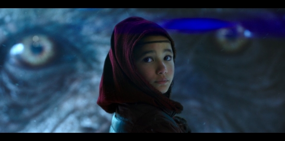 Kaylee Hottle: Als ich am Set war, spielte ich nur die Rolle, so wie es mir meine Master ASL-Person gesagt hat wie ich spielen soll. Ich versuche nicht wirklich, mir die Titanen auf dem Green-Screen vorzustellen. Ich sagte einfach meine Zeilen und spielte die Rolle für die spezifische Szene. Und ja, Markierungen waren genau dort, wo die Crew Markierungen für mich aufgestellt hatten. Dies war dann genau die Position, an der Kong mich anstarrt. Sie verwendeten auch einen Laser-Pointer, um auch auf eine bestimmte Stelle zu zeigen, auf die ich gucken sollte.