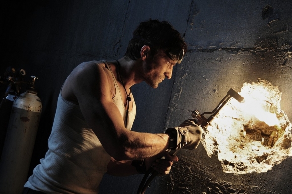 Doch bald wird er endlich fündig. In der Lampe an der Decke befindet sich ein Schlüssel, mit dem sich die Spinde öffnen lassen. Darin befinden sich zum einen Hammer und Meißel und zum anderen zwei Gasflaschen mit Sauerstoff und zur Verwendung als Gasbrenner. Doch der Einsatz der Werkzeuge an der Metalltür scheint hoffnungslos, bis er hinter dem Spind ein Loch in der Wand entdeckt, das er per Hammer und Meißel Stück für Stück vergrößert. Nach einem ganzen Tag Arbeit und dem zusätzlichen Einsatz des Gasbrenners ist das Loch schließlich groß genug, um selber hindurchzukrabbeln. Doch anstatt der ersehnten Freiheit erwartet Mark ein ähnlicher und verschlossener Raum. Nur befinden sich darin ein Sarg und eine Stehlampe. Im Sarg schläft eine farbige Frau (Rungano Nyoni), die er weckt und deren Sprache er anschließend nicht versteht. Doch bald stellt sich heraus, dass sie sich in der gleichen Lage befindet wie er. Gemeinsam trinken sie ihr eigenes Urin, nur um zu überleben. Vor allem Mark scheint mit seinen Kräften am Ende, als sie erneut versuchen, den Kampf gegen den Beton mit Hammer und Meißel aufzunehmen. Ein Wettkampf gegen die Zeit und auf Leben und Tod beginnt für die beiden...