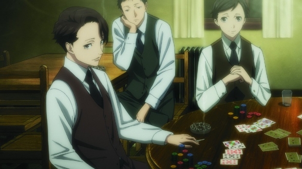 Die Animationen sorgen dabei ebenfalls dafür, dass es in Joker Game nur wenig Identifikationsfiguren gibt und man sich mehr auf die einzelnen Handlungen, denn auf die Figuren konzentriert. Während die Locations nämlich abwechslungsreich gehalten sind, bleibt das Charakterdesign sehr schlicht und bietet damit nur wenig Wiedererkennungswerte, wodurch es sehr schwer fällt, die einzelnen Figuren voneinander zu unterscheiden. Im Gegenzug ist das gesamte Design stark auf Realismus und die ernste Atmosphäre ausgelegt, was sehr gut mit der Spionage-Thematik harmoniert. Bei der deutschen Synchronisation gibt es keinerlei Anlass zu Klagen, und auch das Sounddesign passt sehr gut zum realistischen Grundtenor. Lediglich der Soundtrack ist etwas zu unspektakulär ausgefallen und von stetigen Themenwiederholungen geprägt. Hier passt der Score zwar gut zum Geschehen, kann sich aber nicht durch Akzente hervorheben. Opening und Ending wissen dafür absolut zu gefallen.