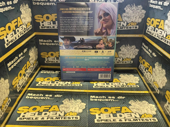 Das Mediabook präsentiert sich vorne mit einem schlichten, aber wirkungsvollen Cover: ein Schriftzug im Stil einer amerikanischen Leuchtreklame, veredelt durch eine Glossy-Optik. Die wichtigsten Informationen finden sich auf einer separat beigelegten J-Card, sodass unschöne Kleberückstände vermieden werden. Die Rückseite überzeugt mit einem stimmungsvollen Motiv, das die beiden Hauptdarsteller in der Ferne vor einem Sonnenuntergang zeigt. Innen liegen neben der Blu-ray und der 4K-Disc auch ein 24-seitiges Booklet mit Fotos und einem Interviewtext bei. Cover & Bilder © 2025 EuropaCorp / capelight pictures / Produktfotos: www.sofahelden.de Das Fazit von: Panikmike
