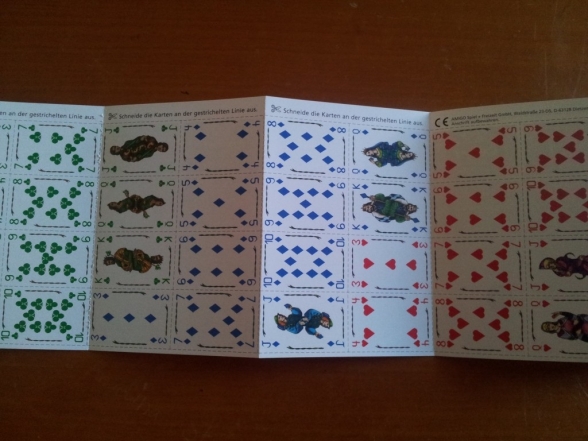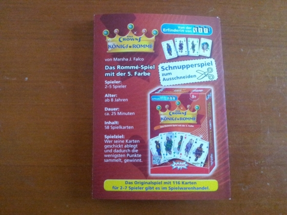 Zusätzlich findet man als Extra das Gratis-Schnupperspiel Königs-Rommé - Five Crowns, für welches ein separater Anleitungsbogen mit einem Satz Karten zum Ausschneiden beigefügt wurde. Wie der Name Gratis-Schnupperspiel bereits erahnen lässt bestehen hier die Karten aus einfachem Papier und dienen lediglich als spielbare Werbeversion für das eigentliche, gleichnamige Kartenspiel aus dem Hause Amigo Spiele, weswegen wir an diese Stelle nicht im Einzelnen auf das Schnupperspiel eingehen möchten.