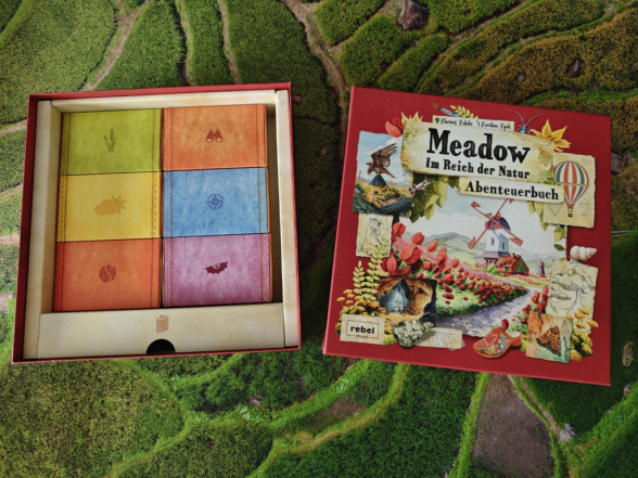 Meadow oder Mischwald? Eine schwierigere Entscheidung kann man gar nicht treffen, oder? Beide Spiele haben sehr ähnliche Mechanismen, und nahezu identische Ratings auf BGG – eine 7,7 in Beliebtheit und eine 2,2 in der Komplexität (Stand: September 2025). Als wir zum ersten Mal Meadow gespielt hatten, gab es Mischwald noch nicht. Wir waren damals sofort verliebt ob des simplen Gameplays, trotz des anspruchsvollen Puzzles. Mischwald haben wir auch. Und zugegebenermaßen stellt sich in beiden Spielen das Gefühl eines entspannten Waldspaziergangs ein. Dennoch gefällt uns Meadow einfach besser. Uns gefällt der Kartenauswahlmechanismus mehr und es ist einfach hübscher anzusehen. Und mit den Erweiterungen Wasserwelten und nun dem Abenteuerbuch bietet Meadow richtig viel Abwechslung. Warum sich das Abenteuerbuch lohnt, erklären wir in dieser Rezension.