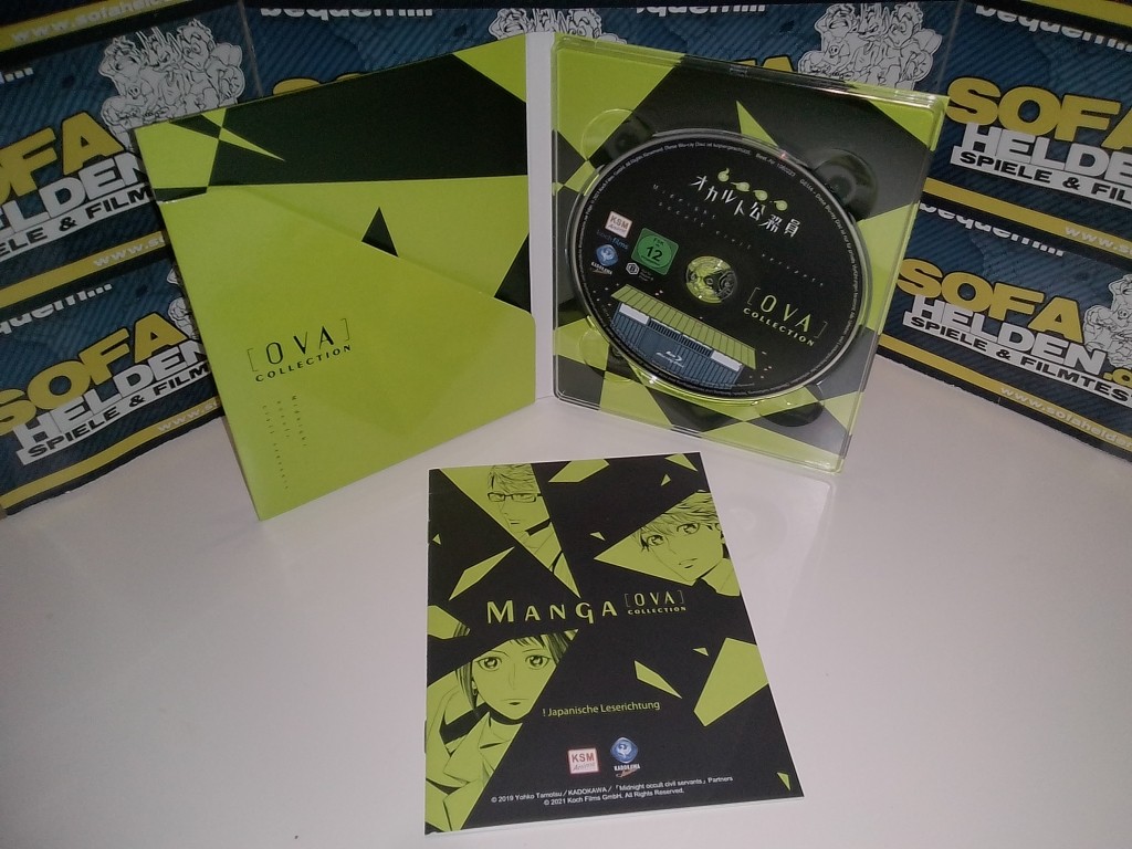 Die OVA-Collection von Midnight Occult Civil Servants erscheint als Digipak im O-Card Schuber. Beide orientieren sich in ihrem Design an den Veröffentlichungen der Serie und zeigen recht simpel aufgebaute Motive. Der Schuber zeigt auf dem Cover die Mitglieder der "Behörde für nächtliche Nachbarschaftshilfe", während sich das Motiv dem Schubers thematisch auf die erste Episode der Collection bezieht. Anstatt einem Booklet beinhaltet die OVA-Collection zudem einen 12-seitigen Manga, inhaltlich ebenfalls passend zur Handlung der OVAs.