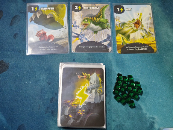 Das Vorhandensein von Blitz-Symbolen heißt auch: es gibt die Energie-Ressource. Und was macht man damit in King of Tokyo? Richtig!