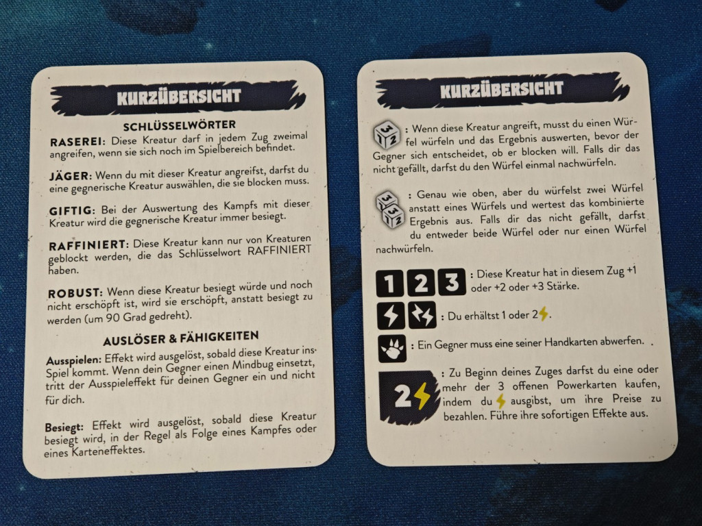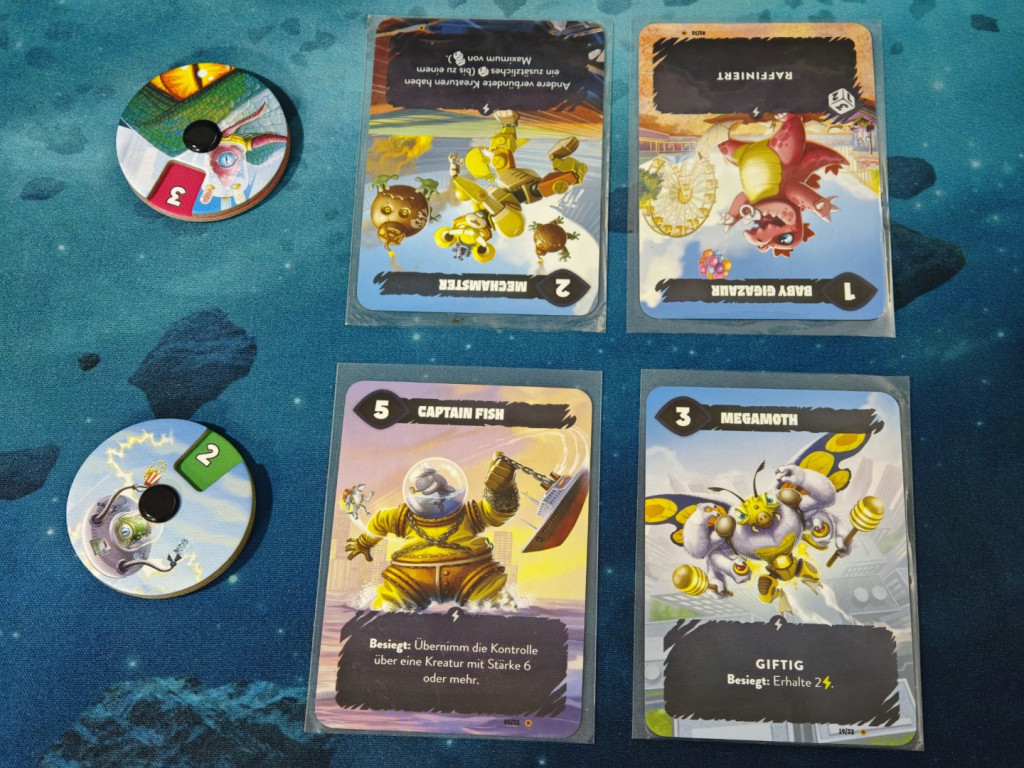 Was macht man mit Energiebrocken? Zu Beginn eines Spielerzuges darf man entscheiden, ob man Energiebrocken ausgibt, um eine oder mehrere der offen ausliegenden Powerkarten zu kaufen. Powerkarten werden sofort vom Nachziehstapel nachgelegt. Erst dann wird der Sofort-Effekt der gekauften Powerkarte ausgelöst, wonach sie auf den Ablagestapel kommt. Die Effekte auf Powerkarten können im richtigen Moment spielentscheidend sein: Energiebrocken auf Reserve zu haben lohnt sich also.