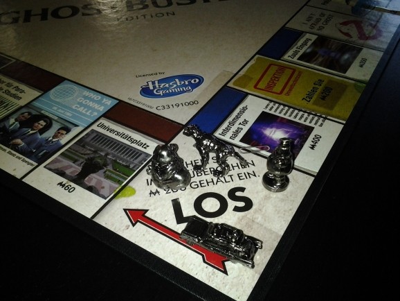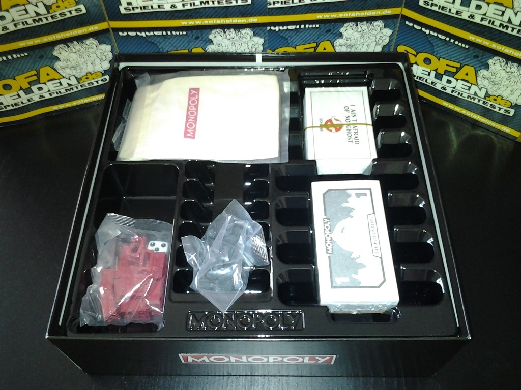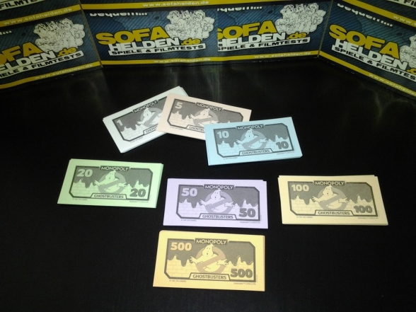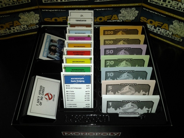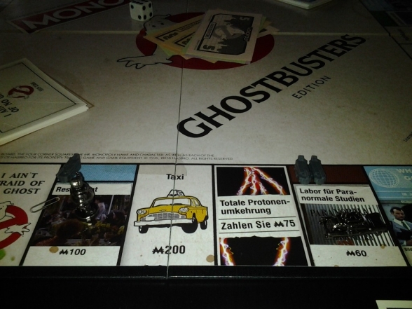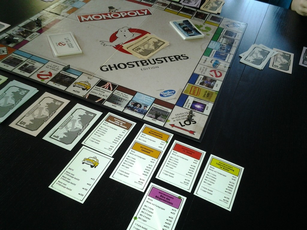 Natürlich möchten wir Euch unseren Spielspaß nicht vorenthalten, deswegen folgt jetzt erst einmal ein paar Detailaufnahmen des Spiels und Bilder von einer gespenstisch guten Runde Monopoly-Ghostbusters: