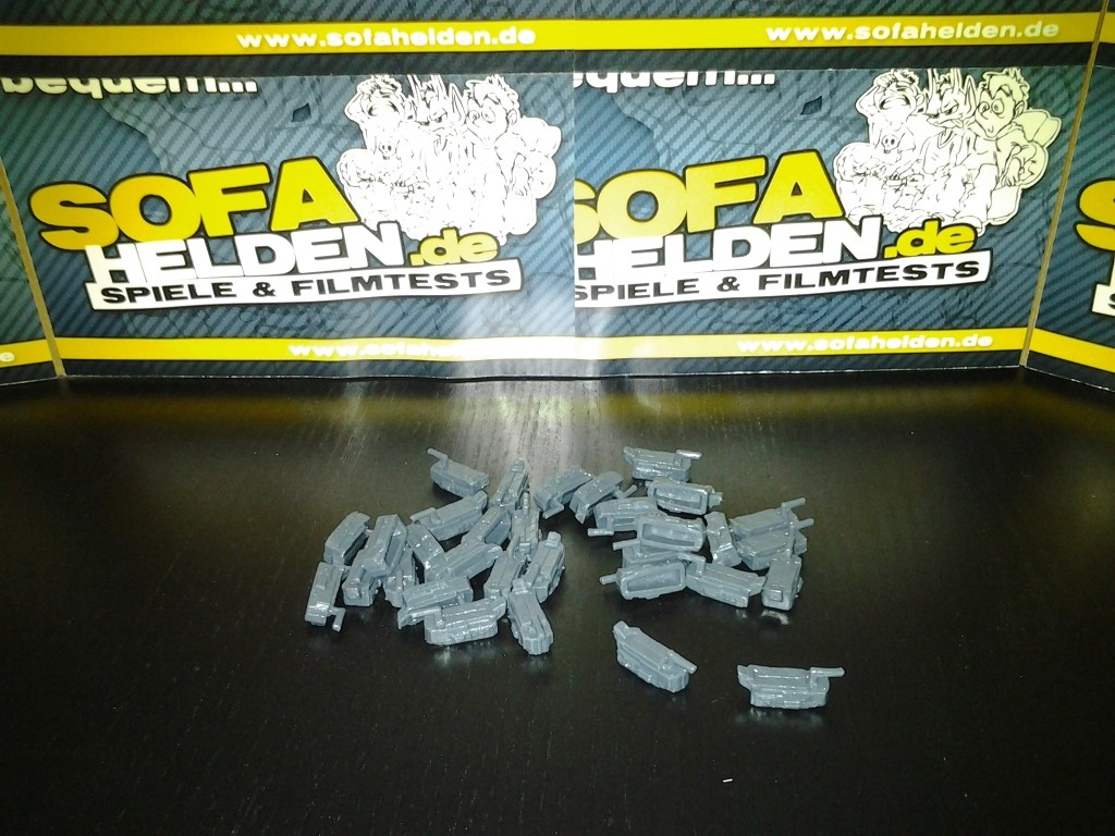 32 Fallen aus Hartplastik, einfarbig grau und sehr detailliert, ohne erkennbare Grate