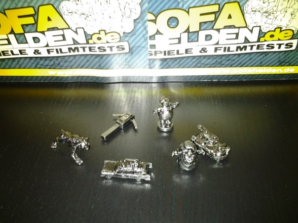 Mein Name ist übrigens Dr. Peter Venkman, und da unser Monopoly dank den stabilen Metallfiguren mit Designs aus dem Film für bis zu sechs Spieler geeignet ist, kann ich mich problemlos mit meinen Kollegen Dr. Raymond Stantz, Dr. Egon Spengler und Winston Zeddemore ins Abenteuer stürzen. Mit dabei sind natürlich Ecto-1, unser treues Gefährt, sowie das obligatorische Protonenpack und ein PKE-Meter, aber auch der fiese Terrorhund, der üble Marshmallowmann und natürlich der nervige und gefräßige Slimer dürfen nicht fehlen. Gemeinsam geht es in die Straßen New Yorks, denn "there´s something strange in your neighbourhood"...