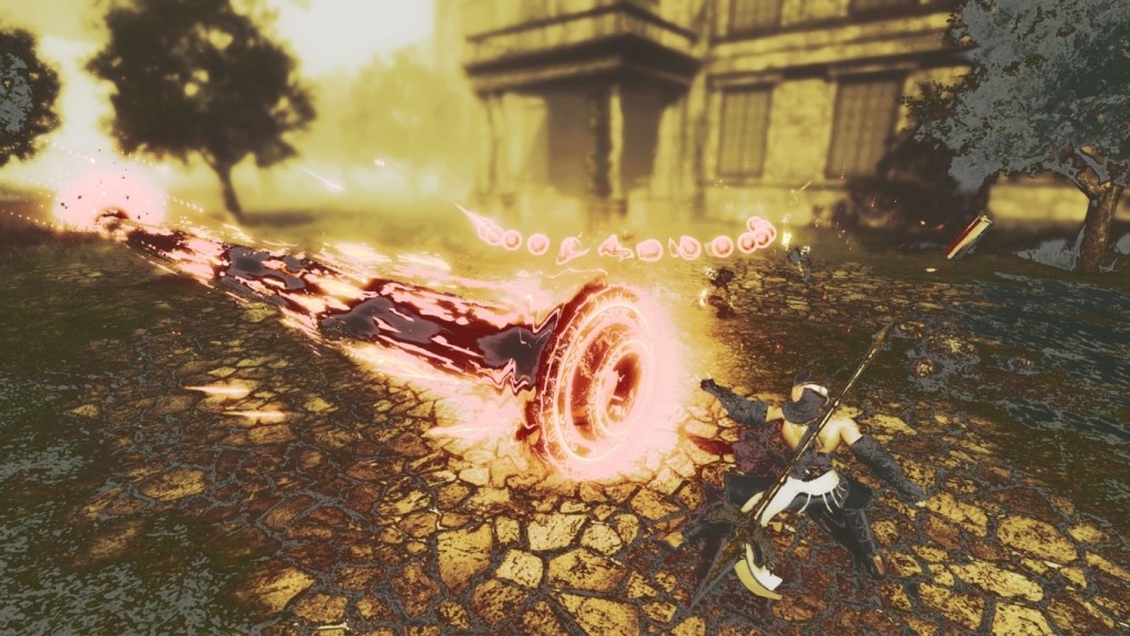 Ergänzend zu den Nahkampfangriffen des Protagonisten erhalten wir mit Grimoire Weiss an unserer Seite auch noch die Fähigkeit diverse Magieangriffe durchzuführen. Über den Spielverlauf werden sehr unterschiedliche Fähigkeiten freigeschaltet, die man sich jederzeit auf einen von zwei freien Slots legen kann, um so schnell und intuitiv im Kampf zaubern zu können. Mithilfe der sich durch das Besiegen von Gegnern auffüllenden Magieleiste kann man so beispielsweise Energielanzen auf selbst weit entfernte Feinde schleudern, sich mit rotierenden Messern umgeben oder eine riesige Faust manifestieren, die beim Aufschlag großen Schaden verursacht. Alle Fähigkeiten können durch längeres Gedrückthalten und Aufbrauchen von mehr Magie auch verstärkt werden. Im Kampf erhaltene, sogenannte Worte lassen sich sowohl auf die Magie als auch auf die Waffen anlegen, um diverse Attribute zu verbessern.