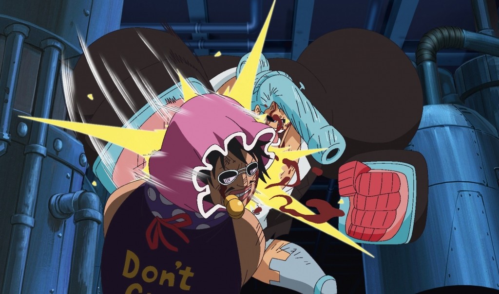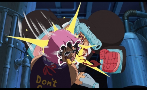 Das Wichtigste vorab: Der Dress Rosa Arc wird auch in dieser Box wieder nicht beendet, denn der Kampf mit de Flamingo steht weiterhin aus. Es reicht gerade noch so für einen ersten Schlagabtausch zwischen ihm und Ruffy, doch danach muss man die Fans mit dem Finale bis zu Box 24 vertrösten. Während man in den enthaltenen Folgen tatsächlich auf die meisten Strohhüte komplett verzichten muss, werden in erster Linie die Kämpfe der semi-interessanten Kolosseums-Kämpfer gegen die Kommandanten de Flamingos gezeigt. Zorros Kampf gegen den Steinmenschen Pika dreht sich durchgängig im Kreis und auch Franky kommt gegen seinen Gegner nicht voran, der durch feste Materie schwimmen kann.