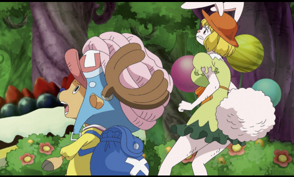Ruffy und seine Freunde sind ihm allerdings dicht auf den Fersen, auch wenn es schwer ist, sich von dem Schlaraffenland nicht ablenken zu lassen, das sich ihnen offenbart. Big Moms Heimat besteht aus mehreren Dutzend Inseln, die alle thematisch um Lebensmittel aufgebaut sind. Gleich auf der ersten Insel, die sie ansteuern, besteht schlichtweg alles aus deliziöser, essbarer Schokolade. Und nicht nur das, sie treffen auch gleich auf Sanjis zukünftige Ehefrau, die sie ziemlich überrascht - und Gefahren, die einer Kaiserin der Meere angemessen sind...