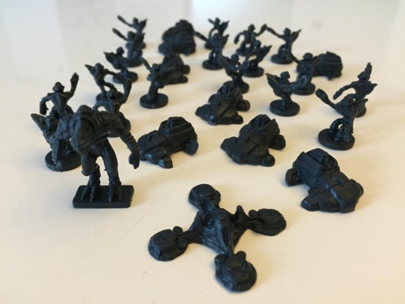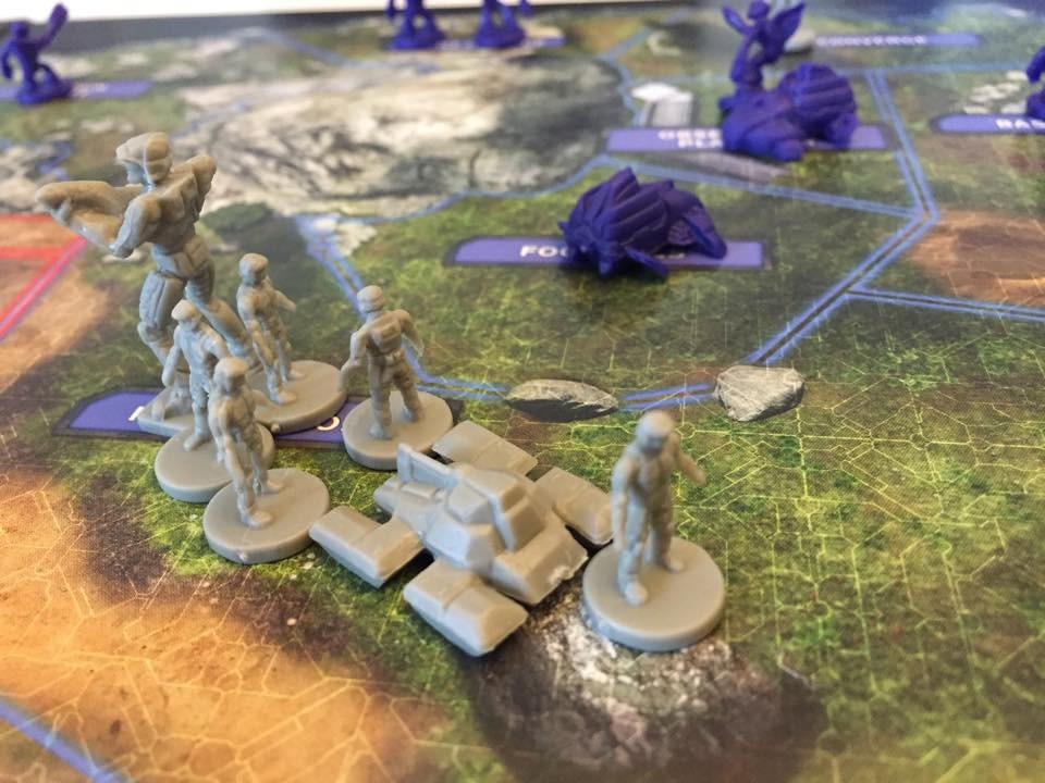 Die Vorbereitung dauert nicht lange – je nach dem, welchen der vier Spielmodi man spielt. Der Aufbau ist hierbei aber ziemlich gleich. Jeder Spieler nimmt sich seine Fraktion und, je nach Spiel, eine gewisse Anzahl von Teleporterchips aus der Schachtel. Ein Spieler mischt die Fraktionskarten getrennt voneinander und legt sie neben das Spielbrett. Zu guter Letzt werden noch die Kampagnenkarten nach der Schwierigkeitsstufe (Einfach, Heldenhaft und Legendär) gemischt und jeder Spieler bekommt pro Stapel eine Karte. Danach wird reihum gemäß gewissen Regeln das Spielbrett aufgebaut. Das folgende Beispiel ist vom 2-Spieler-Modus, genannt „One-On-One“. Nachdem die Spielvorbereitung abgeschlossen ist, darf jeder der beiden Spieler die Teleportersteine auf zwei Gebiete setzen. Diese sind von nun an verbunden und können von jeder Einheit – egal ob Freund oder Feind – benutzt werden. Danach darf jeder Spieler einmal würfeln. Der Spieler mit der höchsten Augenzahl beginnt. Er setzt seine Basis und eine einfache Einheit auf ein beliebiges Feld auf dem Spielplan. Spieler 2 darf nun dasselbe tun, aber die Einheiten müssen auf ein unbesetztes Feld. Danach werden zwei Einheiten der Fraktion Flood gesetzt, die als Feinde für alle gelten. Mit diesen Regeln wechselt man sich ab, bis jedes der Gebiete beansprucht worden ist – danach ist endlich Zeit für die entscheidende Schlacht!