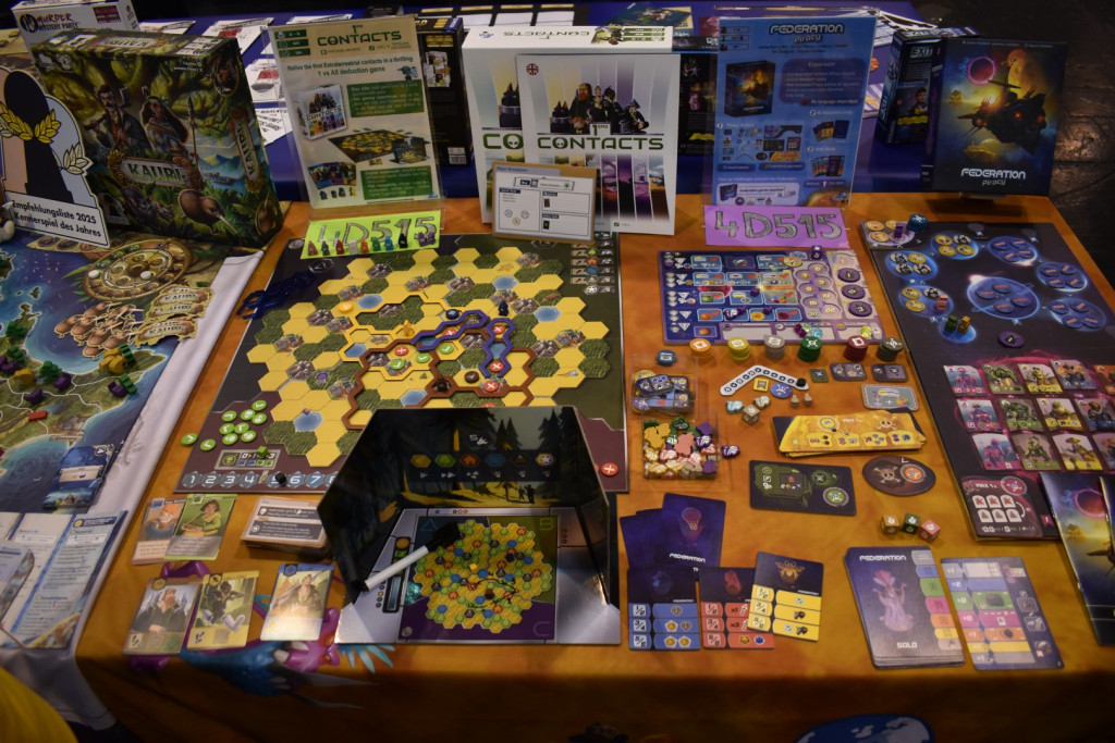 Zum Thema Spiele spielen ist anzumerken, dass wir natürlich das Glück hatten, welche antesten zu können, aber vor allem auch viele Termine vor Ort hatten. Man kommt zwischendurch dennoch mit den sehr netten Leuten von kleinen Verlagen in Kontakt, die einem die Spiele natürlich gern erklären. Für Spielerfahrene wie uns ist es leicht, sich dann schon ein grobes Bild vom Spiel zu machen, für „Neulinge“ wird das schwieriger. Dafür gibt es dann aber wiederum auch Hallen mit leichteren Spielen für Familien und Anfänger. Eine gute Mischung. Wir wissen nicht wie es ist, wenn man den ganzen Tag Plätze sucht zum Spielen, aber wie Alex schon ausführte ist das nicht wirklich das Ziel der SPIEL.
