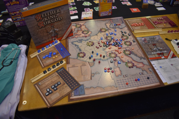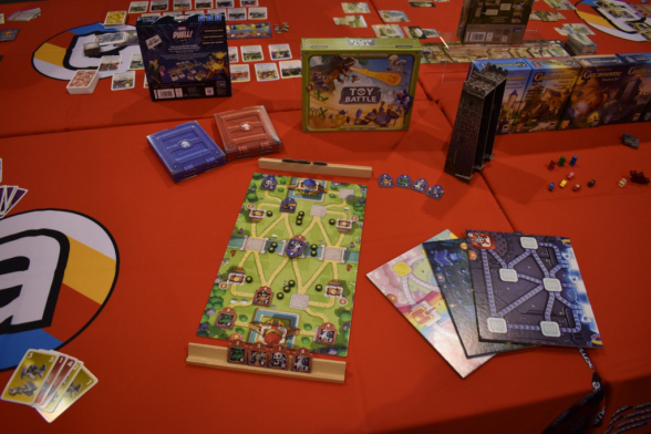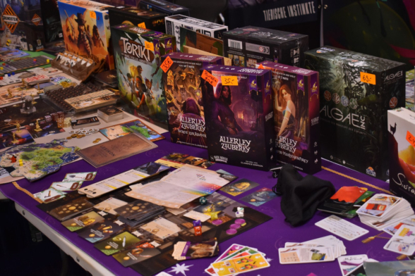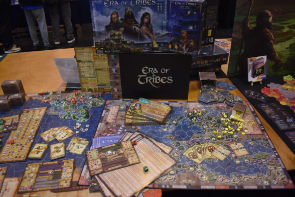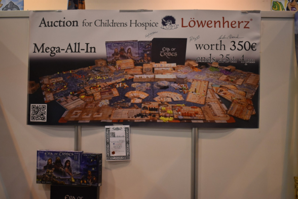 Leider stellten wir bei vielen Verlagen fest, dass Kriegsbedingt Lieferungen für die SPIEL nicht rechtzeitig ankamen und viele auf Ihre Spiele noch warteten oder sie kurz vor knapp erhalten haben. Gerade bei kleineren Verlagen ist das natürlich besonders kritisch. Hier sprachen wir beispielsweise mit Black Beacon Games, die es mit Mühe und Not noch hinbekommen haben, eine Deluxe Version von Era of Tribes zu organisieren und damit eine Tombola zum Wohle des Kinder Hospiz Löwenherz zu veranstalten.