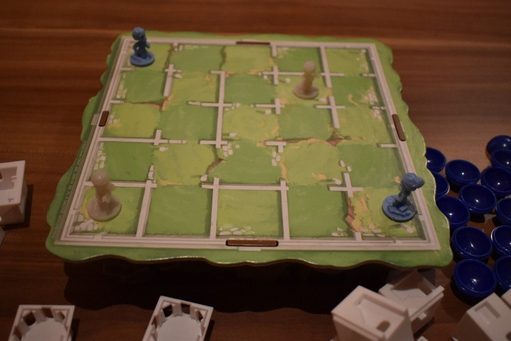 Für das erste Spiel werden einfachere Regeln ohne die Götterkarten empfohlen. Nun wird die Insel aus dem Spielplan und den Klippen zusammengebaut. Jeder Spieler sucht sich eine Farbe aus und nimmt sich die beiden Arbeiterfiguren. Die Gebäudeteile werden neben dem Spielfeld bereitgelegt und der Startspieler kann beginnen.