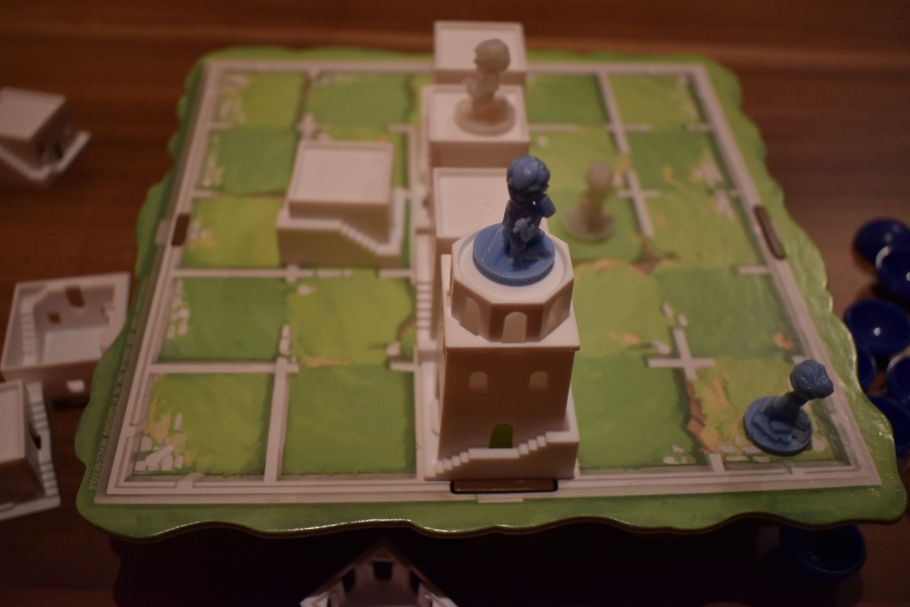 Nach ein paar Runden mit den einfachen Regeln kann man sich dann auch an das Spiel mit den Götterkarten wagen. Hierbei erhält jeder Spieler eine Götterkarte, die die Grundregeln um weitere Aktionen erweitert. So kann man zum Beispiel mehr bauen oder Gebäude frühzeitig mit dem Bau einer Kuppel abschließen. Santorini ist zwar für zwei bis vier Spieler geeignet. Somit kann man auch entweder zu dritt oder im Teamspiel zu viert spielen, aber eigentlich ist es für zwei Spieler konzipiert.