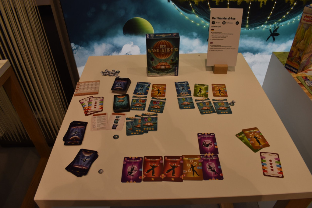 Den Abschluss, was Neuheiten angeht, machte Pegasus. Bekannt für seinen großen und sehr umfangreichen Stand, hatten wir hier schon mehr Zeit eingeplant, die aber trotzdem nicht für alles ausreichte. Von der Präsentation der Kinder-Geschicklichkeitsspiele wie Torten Träume, über kooperative Karten Spiele wie Last Minute, bis hin zu Kennerspielen mit sehr interessantem Spielmaterial wie Kalypso, war alles dabei.