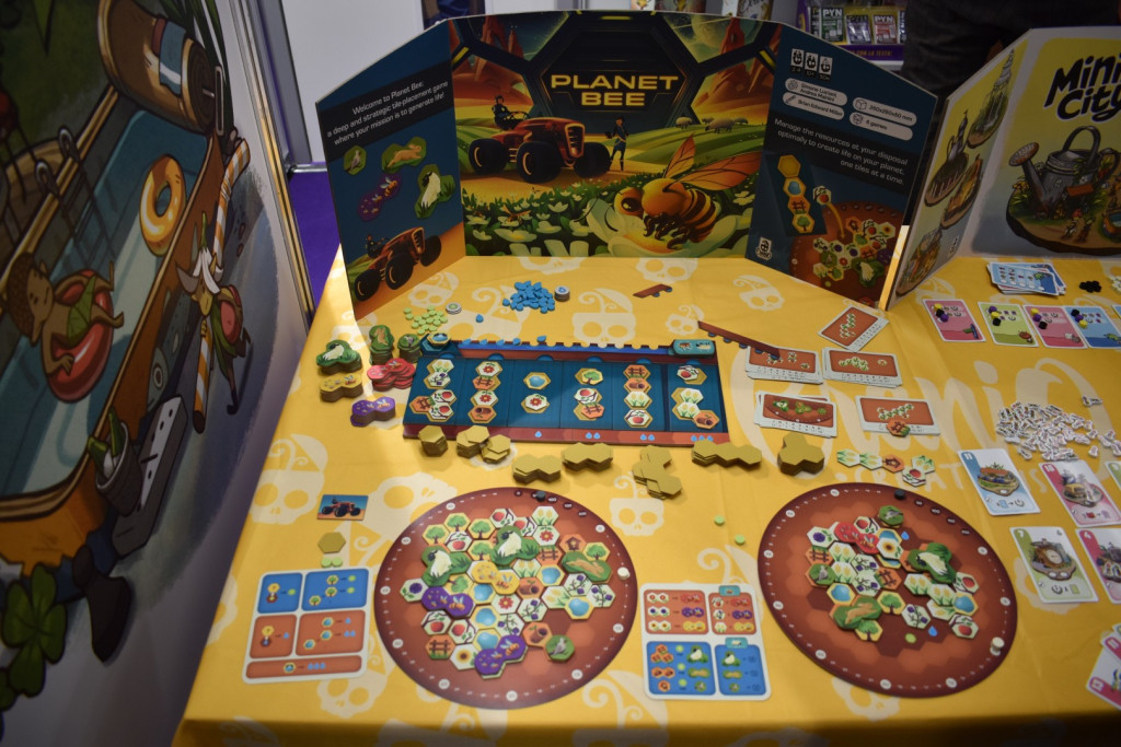 Im vorletzten Termin präsentierte man uns am Stand von Cranio noch das vielversprechende Geschicklichkeitsspiel Orcs Up!. Ebenfalls interessant war hier das an Harmonies erinnernde Planet Bee, das den bekannten Mechanismus noch etwas komplexer präsentieren möchte. Neu war für uns der Verlag Red Glove, der vor allem mit Kinder- und Familienspielen auf der Suche nach deutschen Distributoren war. Hier stach uns Jurassic Valley ins Auge, das durch seine Fossilien-Modelle aus Holz bestach. Ebenfalls interessant dürfte aber der Dungeon Cube sein, der vom Grundprinzip her an einen Rubics Cube erinnert, bei dem man aber nicht die Farben sortieren, sondern Aufgaben erledigen und sich durch eine Geschichte spielen muss.