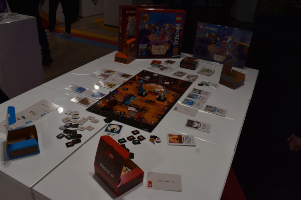 Der Freitag fiel uns sehr schwer. Er begann mit Piatnik, wo wir einige bekannte Neuheiten von der SPIEL aber auch einiges Neues entdecken konnten. Das Highlight hier war für mich Die hängenden Gärten. Ein interessantes Plättchen-Legespiel. Weiter ging es bei asmodee. Dort hatte man das bereits angekündigte neue Lego-Spiel Lego Ninjago - Destiny’s Bounty Adventures ausgestellt. Die Erklärungen am Stand waren dieses Jahr leider etwas dürftig, was unseren Eindruck zu dem Spiel eventuell etwas beeinflusst hat. Es fühlte sich auf den ersten Blick zumindest nach zu wenig Lego an für ein Lego-Spiel, aber vielleicht ist man da durch Monkey Palace auch etwas verwöhnt. Ebenfalls sehr interessant wirkten das Kartenspiel dnup und das Familienspiel Got Five!, das an eine Art umgekehrtes Bomb-Busters für Kinder erinnerte.