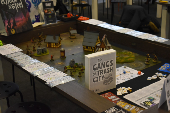Was uns im Vorfeld aber schon aufgefallen ist: man konnte den einen oder anderen neuen Verlag entdecken. Hierzu gehörte zum Beispiel auch der Rollen- und Brettspielverlag Squink, den wir schon auf der SPIEL 2025 unter die Lupe genommen hatten. Kurz vorher hatten wir gerade erst NussFieber getestet und wollten uns nach den neusten Infos zu Fateforge und dem Crowdfounding-Projekt Draconis erkundigen. Letzteres läuft übrigens nicht mehr lange und wir haben selbst investiert. Denn es wurde uns leider zu gut als „anfängertaugliches Rollenspiel für die ganze Familie“ gepitcht. Anschließend ließen wir uns auf der großen Spielfläche nieder, um ein paar Spiele zu spielen. Hierzu gehörten das etwas ältere Karak von Kosmos, Kavango von Schmidt Spiele und das lange unterschätzte Neuland von Game Factory. Doch wie so oft, verging die Zeit wieder viel zu schnell und es war plötzlich 18:00. Noch eine Stunde bis zu unserem Event…